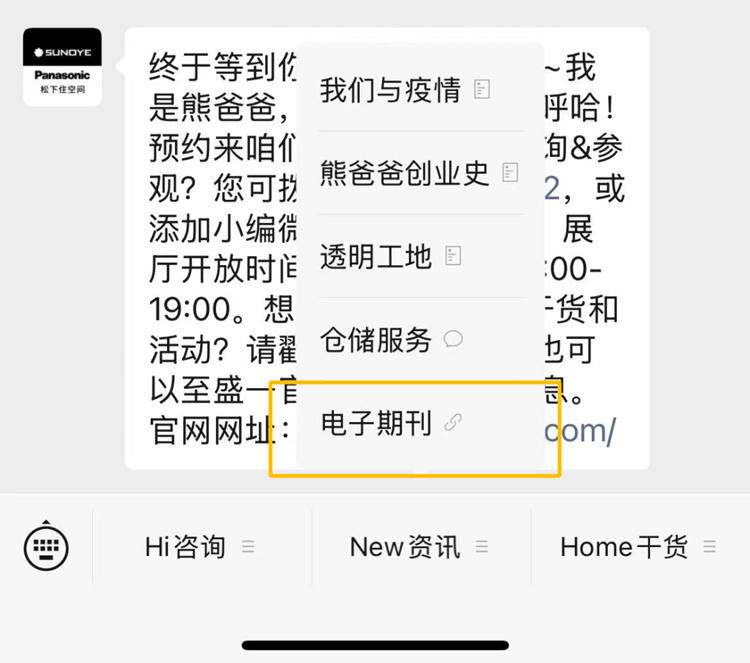 进入公众号后,点击底部菜单栏「New咨询」→「电子期刊」,即可直达电子期刊专区。