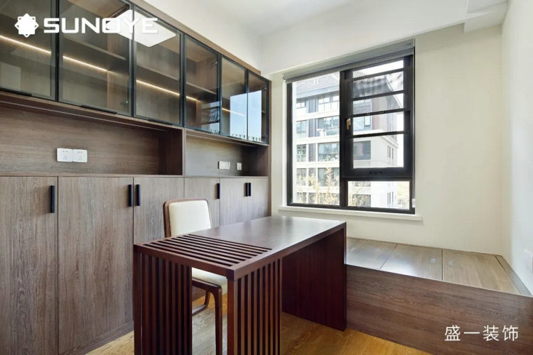 利用飘窗,搭配精巧的书柜与坐榻,将飘窗完美的打造成一个小书房。闲暇时,坐在这里看书、追剧,想想就美极了!不仅整齐实用,采光条件也好。