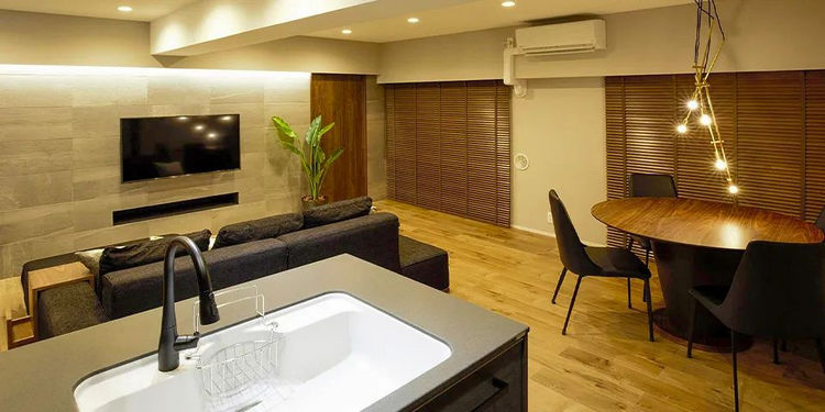日式设计讲究借景,以体现空间的通透性,所以会运用到大量的格栅、推拉门、隔断等元素。在这里,借景不局限于借室外的景,也可理解为借其它室内区域的景 。所以对整个空间设计的统一性、流动性也有所要求,体现出来的是一种人文上的关怀。