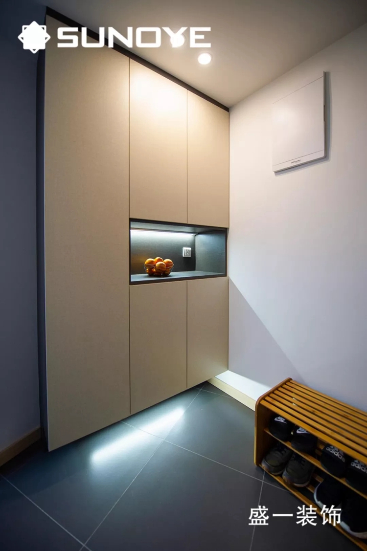 在玄关处做一个玄关柜,你家的鞋子和雨伞都有了去处。作嵌入式收纳柜或是鞋柜,随你喜欢。
