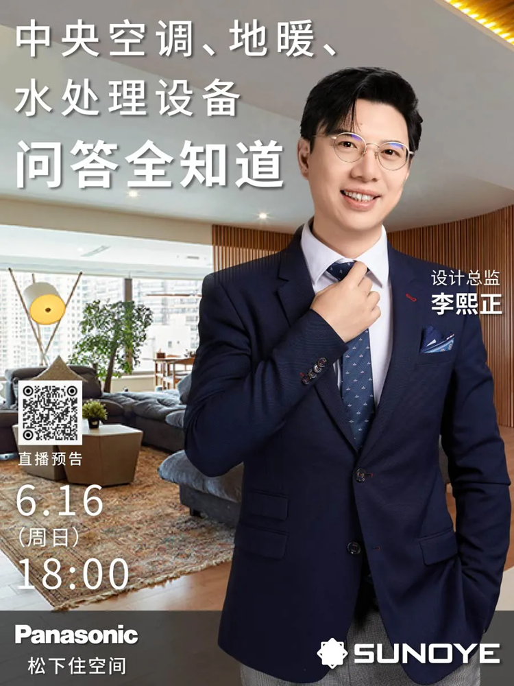 6月16日星期日18:00 盛一装饰设计总监李熙正李总将为大家直播讲解中央空调、地暖、水处理设备的相关知识