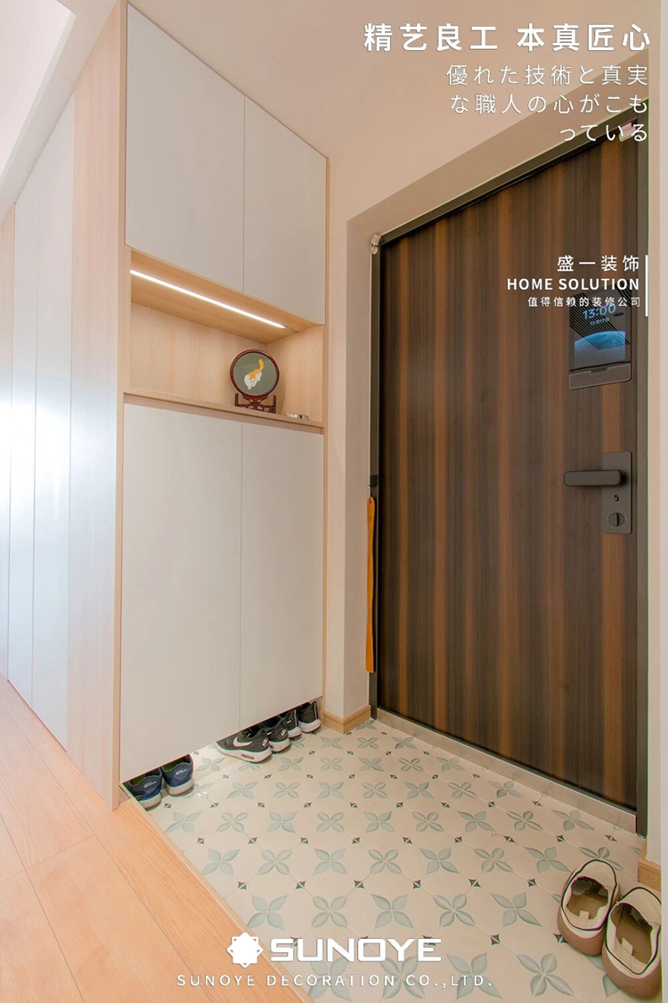 不同于传统平面玄关,通过抬高室内地台形成5-15cm的高低差,形成天然落尘区。这种设计源自日本"土间"文化,