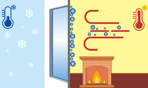 当室外冷空气与室内暖空气相遇,窗户和墙壁便会出现水珠,这就是结露。