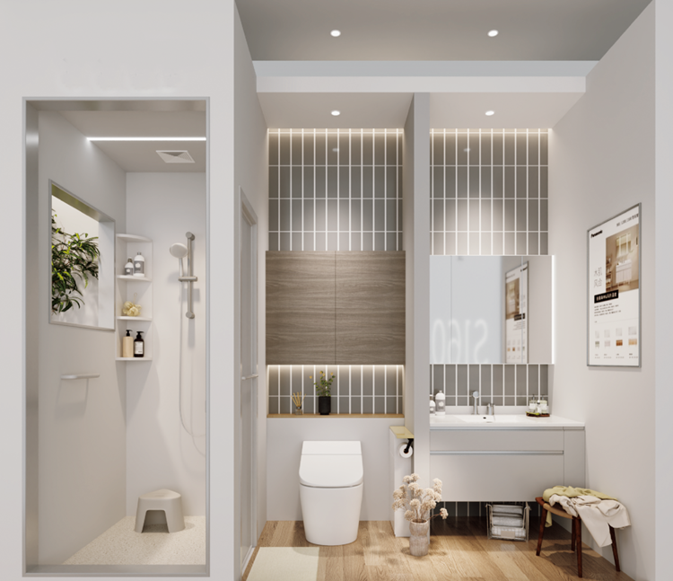 松下住空间采用三分离卫生间设计,将洗漱区、淋浴区和马桶区独立分开,形成了三个互不干扰的独立空间,