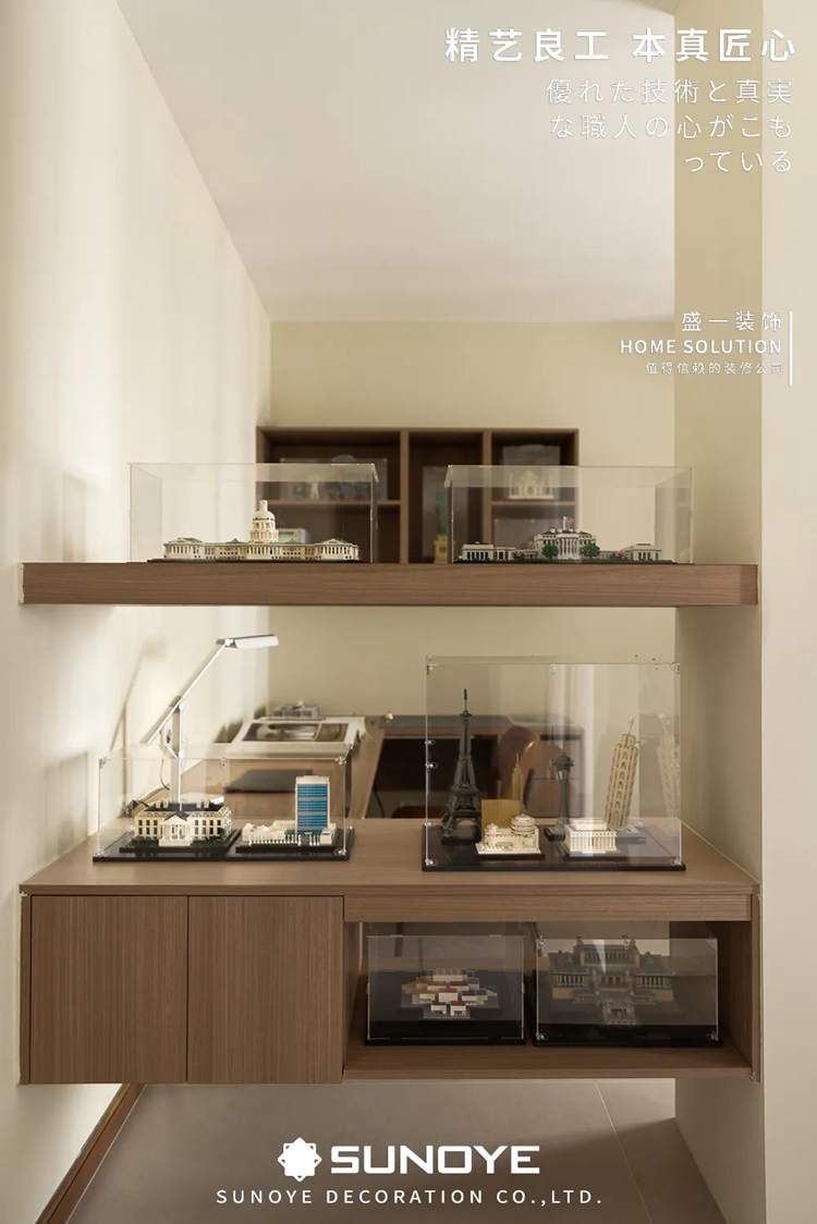 o展示区(可选): 书架、开放格、桌面。仅放置真正喜爱且美观的物品,避免堆积杂物。